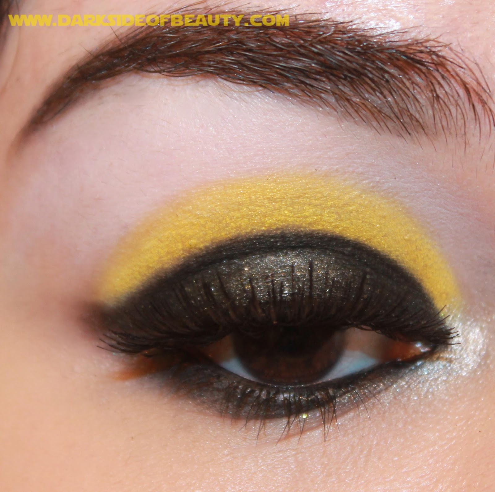 This Sailor Moon inspired look is based on Luna's human form. I love how she looks as a human; she is so cute! For this I choose to use the yellow from her dress and black from her hair and dress. Luna is Latin for Moon, so it was only natural to take inspirations from her crescent moon shapes as well as from the moon itself~I'm not going to lie, this isn't the most wearable look, and it kind of makes me look like a panda. But panda's are cute, so I don't mind! xD